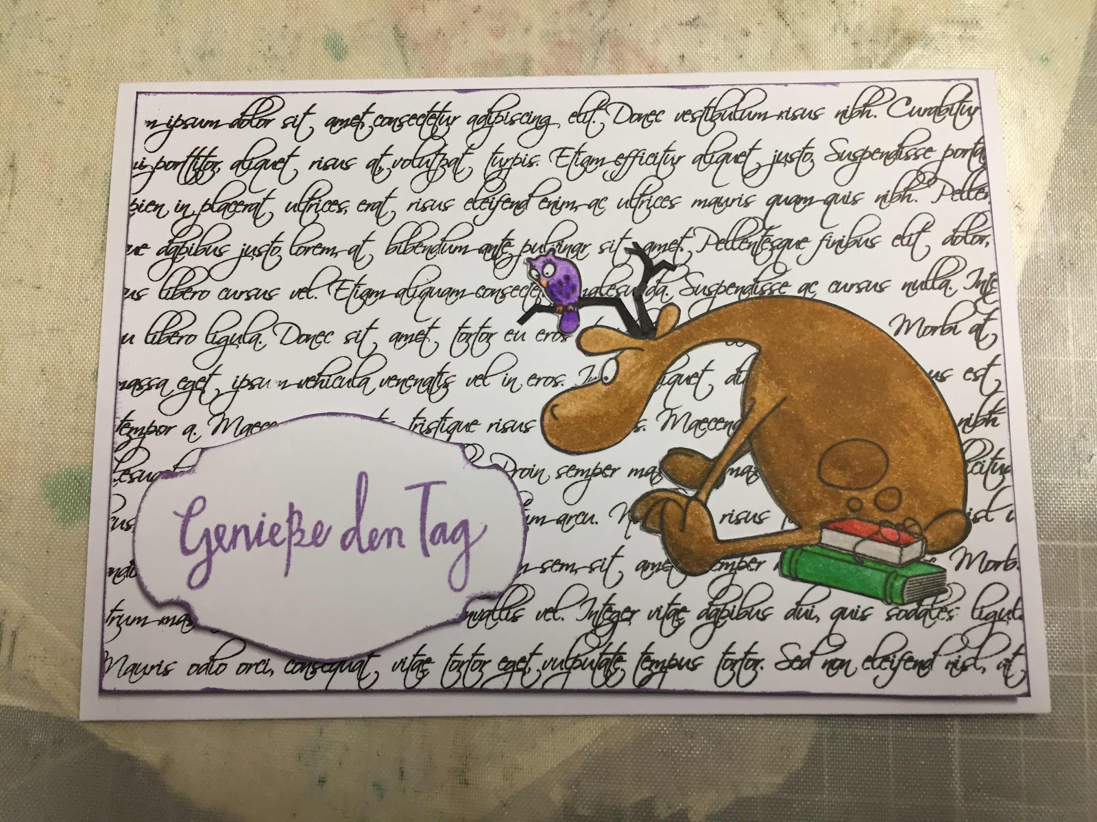 Den Stempel habe ich auf der Creativa gefunden und der passte einfach klasse zu dem Hintergrund...